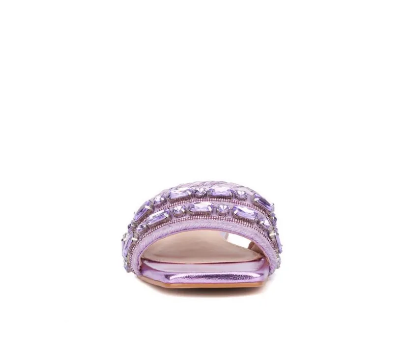 These flat sandals bring a playful and eye-catching twist to warm-weather style. Featuring a single wide strap embellished with colorful beads, rhinestones, and woven accents, they offer a fun, artisanal feel. Perfect for vacation looks, weekend outings, or adding flair to everyday outfits.