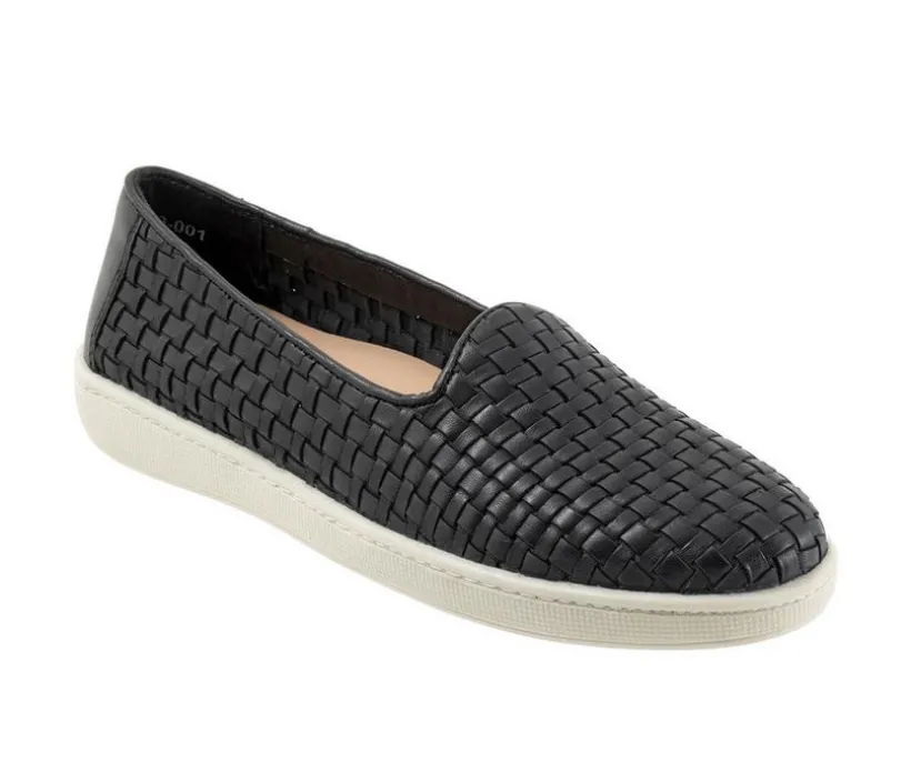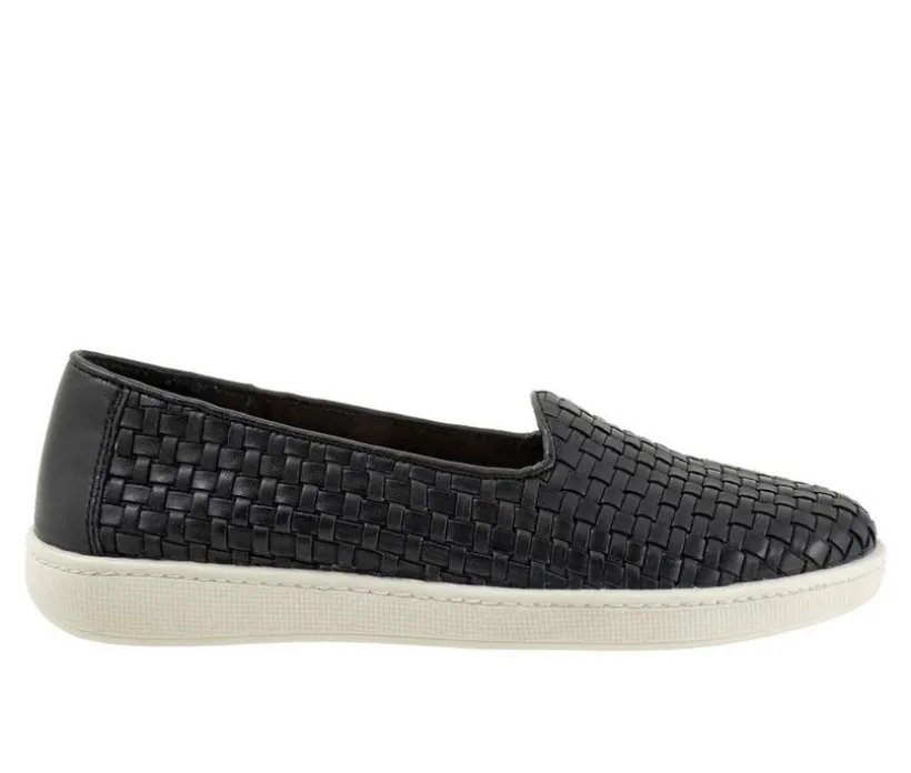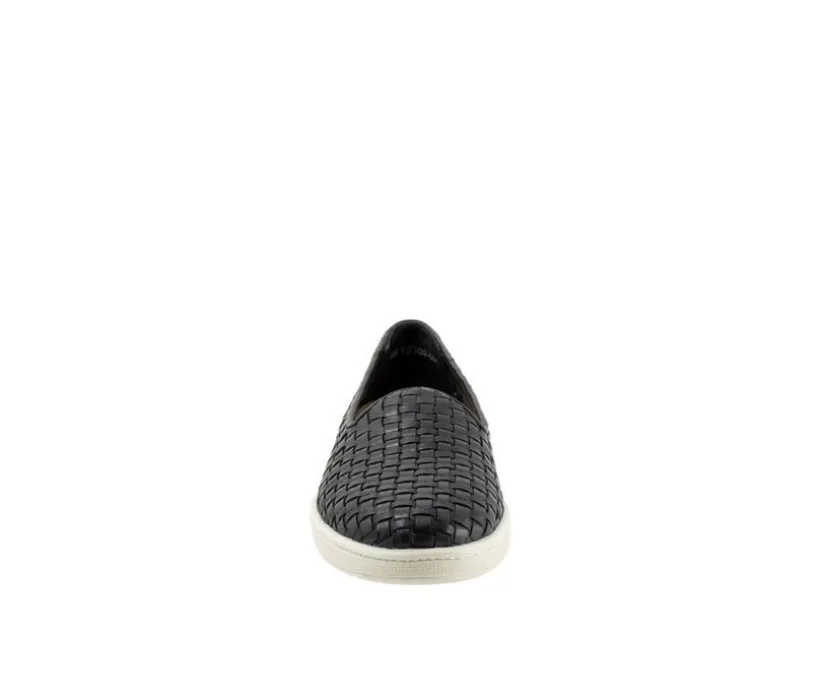 Adelina combines woven style for a unique casual slip on. A cushioned footbed with arch support is removable and the unit rubber sole is supportive and slip resistant. A soft lined upper cradles your foot in comfort.