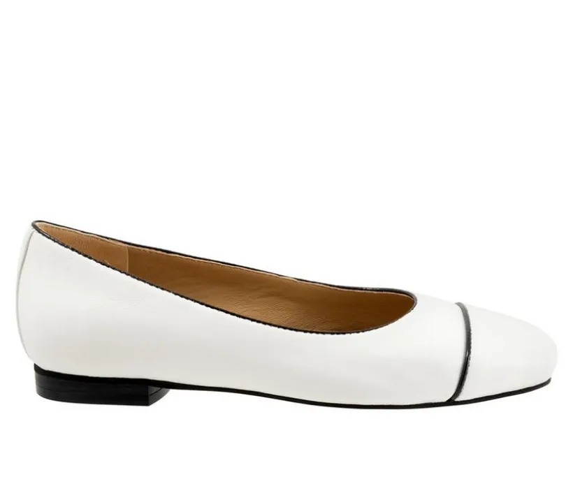 Harbor makes a statement with its square toe and skimmer style and delicate piping detail. A wonderfully cushioned footbed and flexible rubber sole with low stacked heel finish off this beautiful flat.
