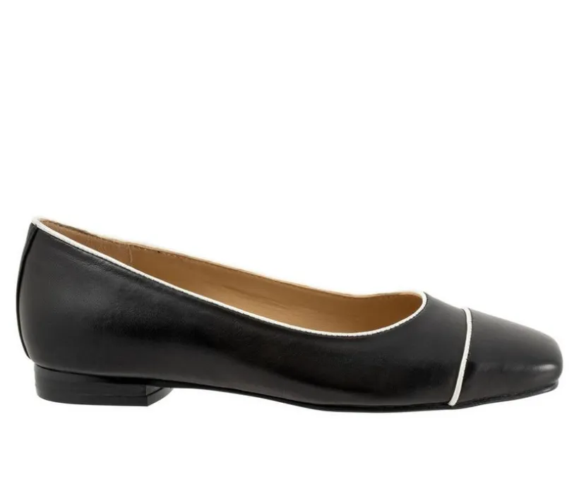 Harbor makes a statement with its square toe and skimmer style and delicate piping detail. A wonderfully cushioned footbed and flexible rubber sole with low stacked heel finish off this beautiful flat.