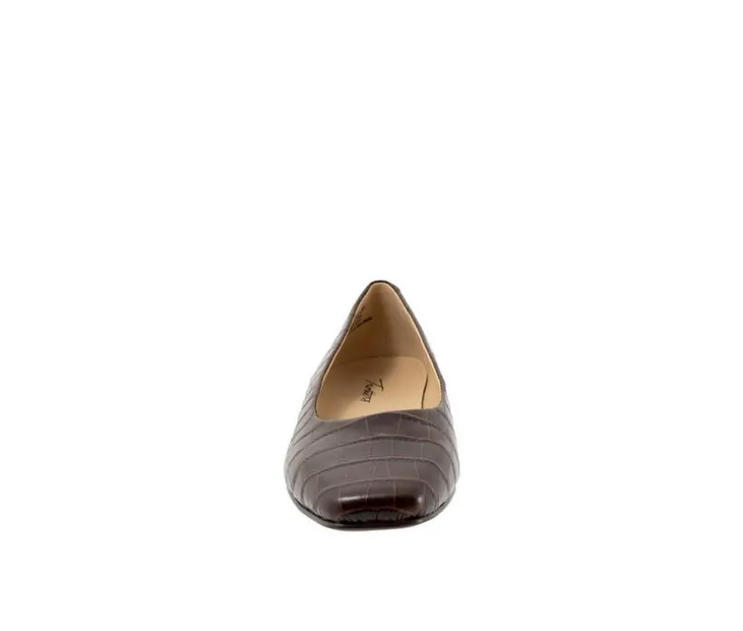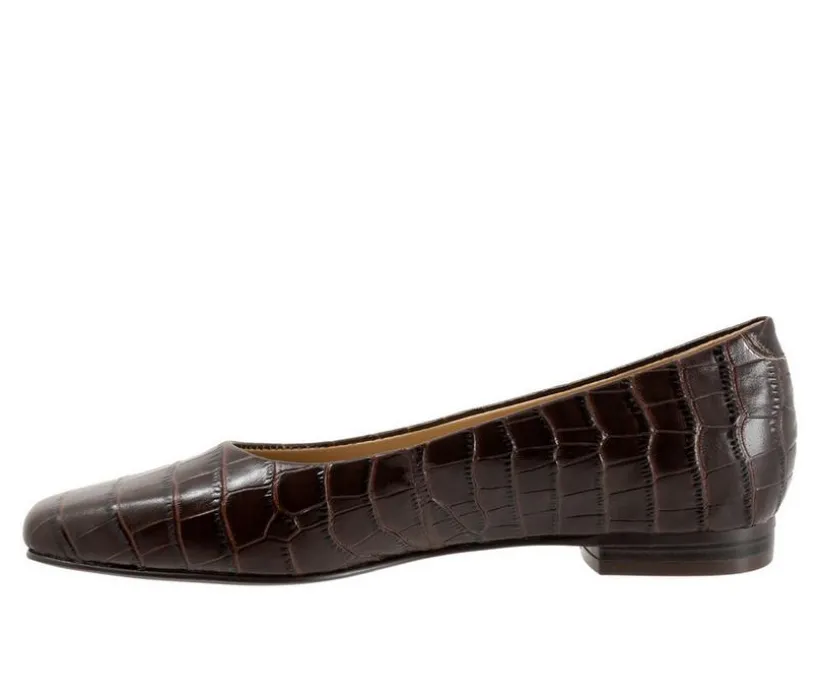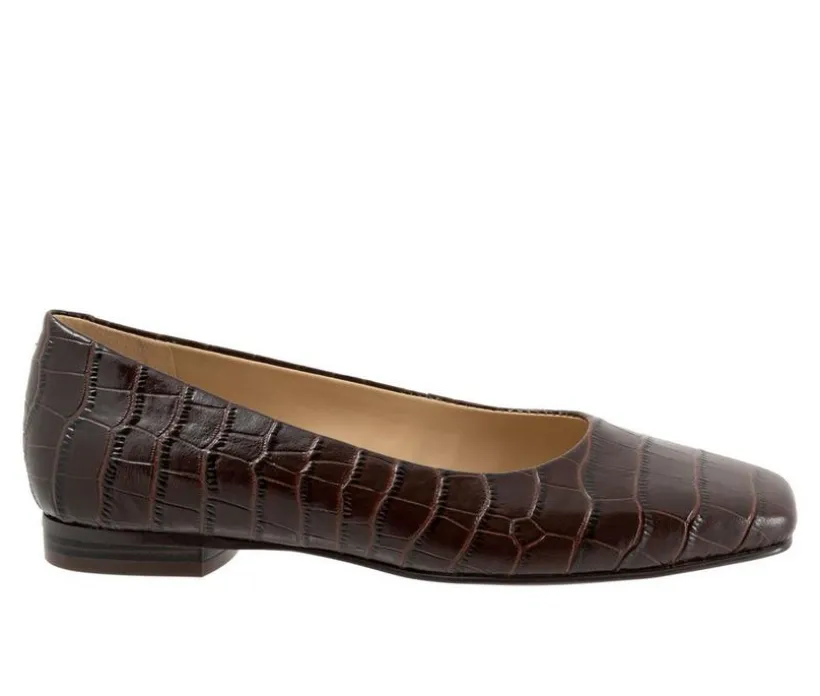 Honor makes a statement with its square toe and skimmer style. A wonderfully cushioned footbed and flexible rubber sole with low stacked heel finish off this beautiful flat.