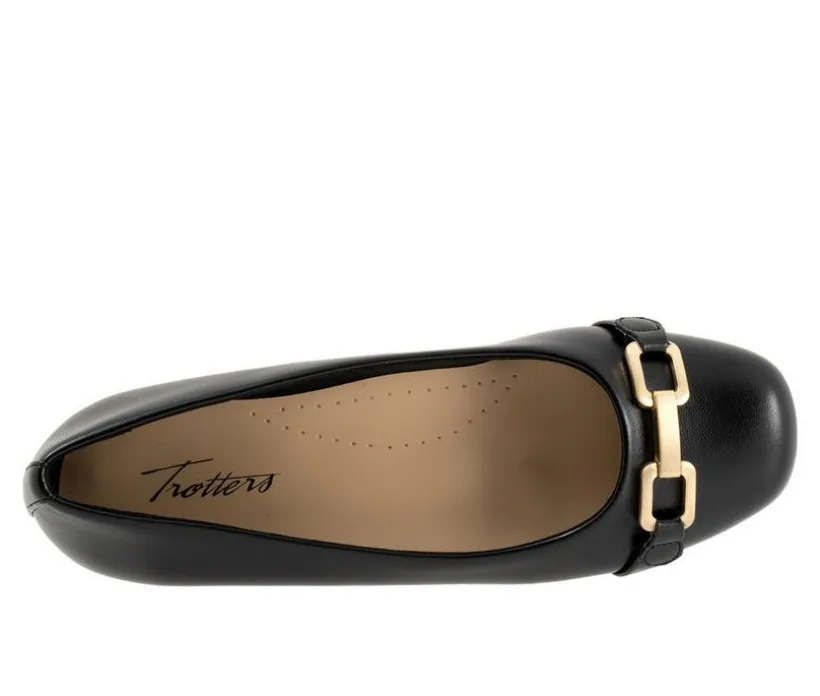 The Sadie flat adds a touch of class with a classy tailored buckle detail. The removable footbed is cushioned and has arch support and the long-wearing sole is based from a Trotters best seller.