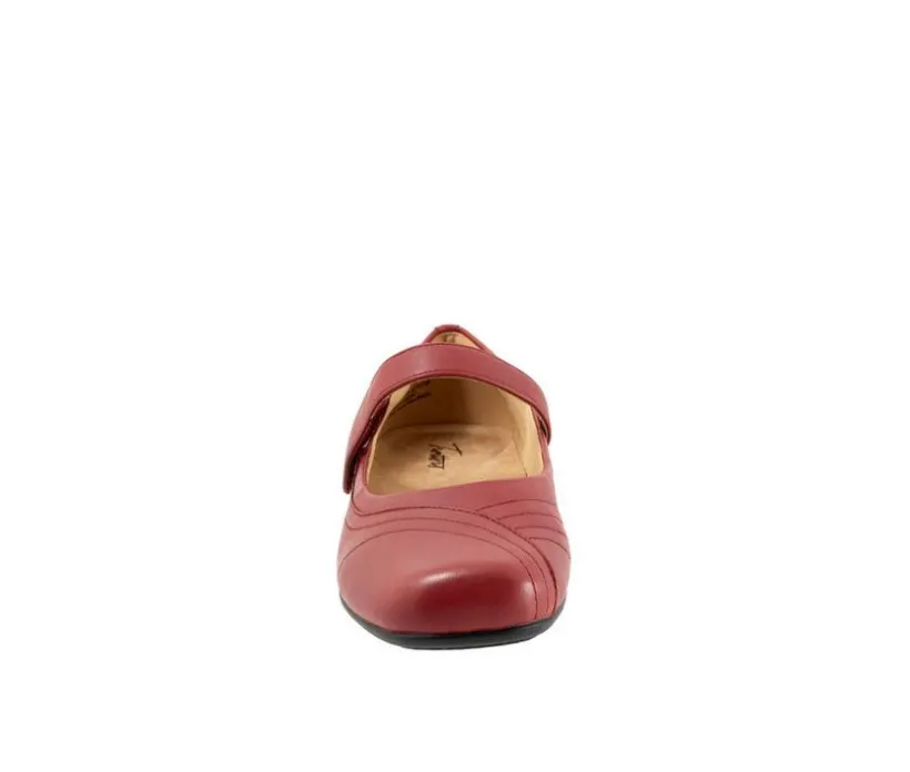 Wavy lines of stitching and overlapping leather give the Sherese maryjane flat a sense of whimsy. The removable footbed is cushioned and has arch support and the long-wearing sole is a Trotters best seller.