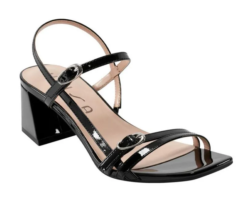 The Unisa Laider sandal delivers sleek sophistication with a minimalist silhouette and a bold block heel. Designed with slender patent straps and adjustable buckles, it offers both a secure fit and a polished finish. A cushioned footbed enhances comfort, while the flared heel provides stylish stability. Perfect for dressy occasions or nights out, it’s a versatile sandal that pairs effortlessly with modern looks.