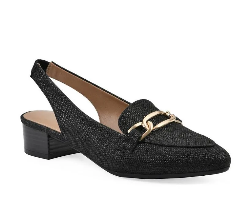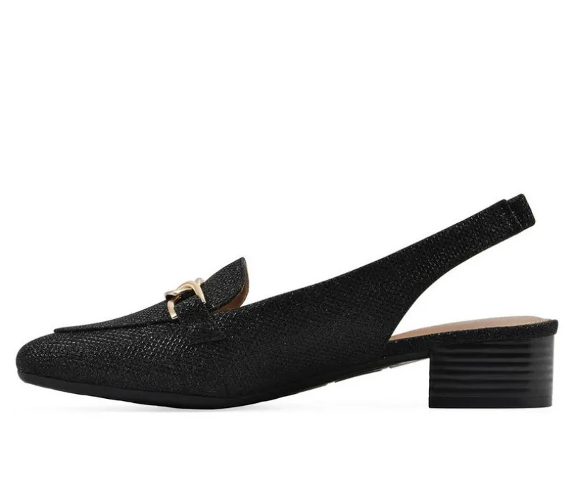 Business in the front and party in the back! The Boreal loafer by White Mountain Shoes has the best of both worlds. This heeled loafer features an almond toe, small metal keeper for a professional look, as well as a casual sling back strap for all day comfort.