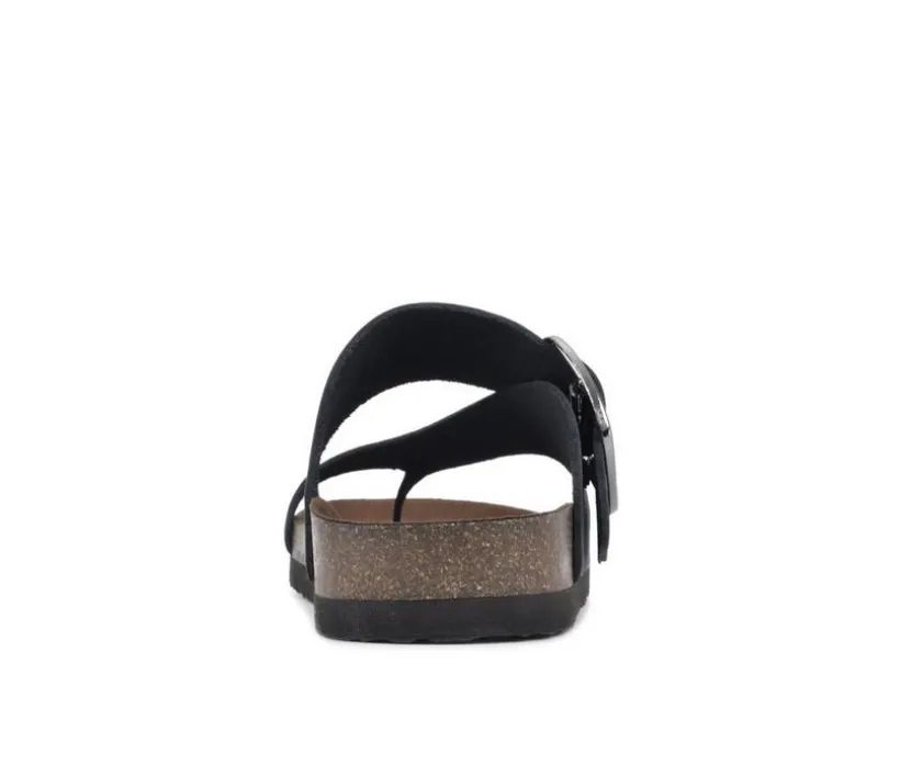 The Harley slip on thong sandal by White Mountain Footbeds™ features a molded suedette footbed and comfort heel cup.The extra wide strap features an exaggerated brass buckle detail for a fresh fashion forward look.