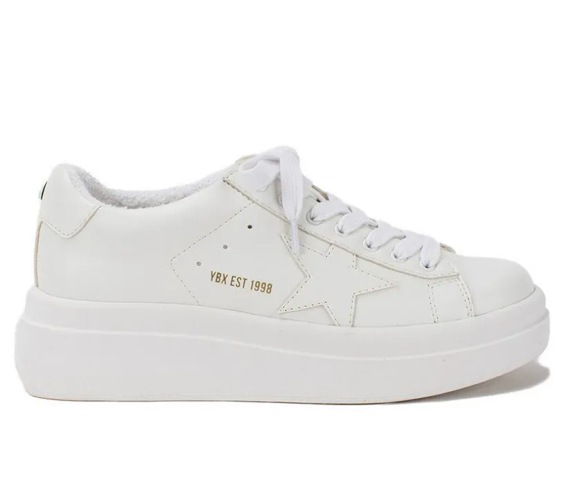 Meet Elonnia, a vintage-inspired lace-up sneaker with a star applique and gold YBX lettering on the side panel. The lightweight flatform outsole elevates your style and comfort with every step.